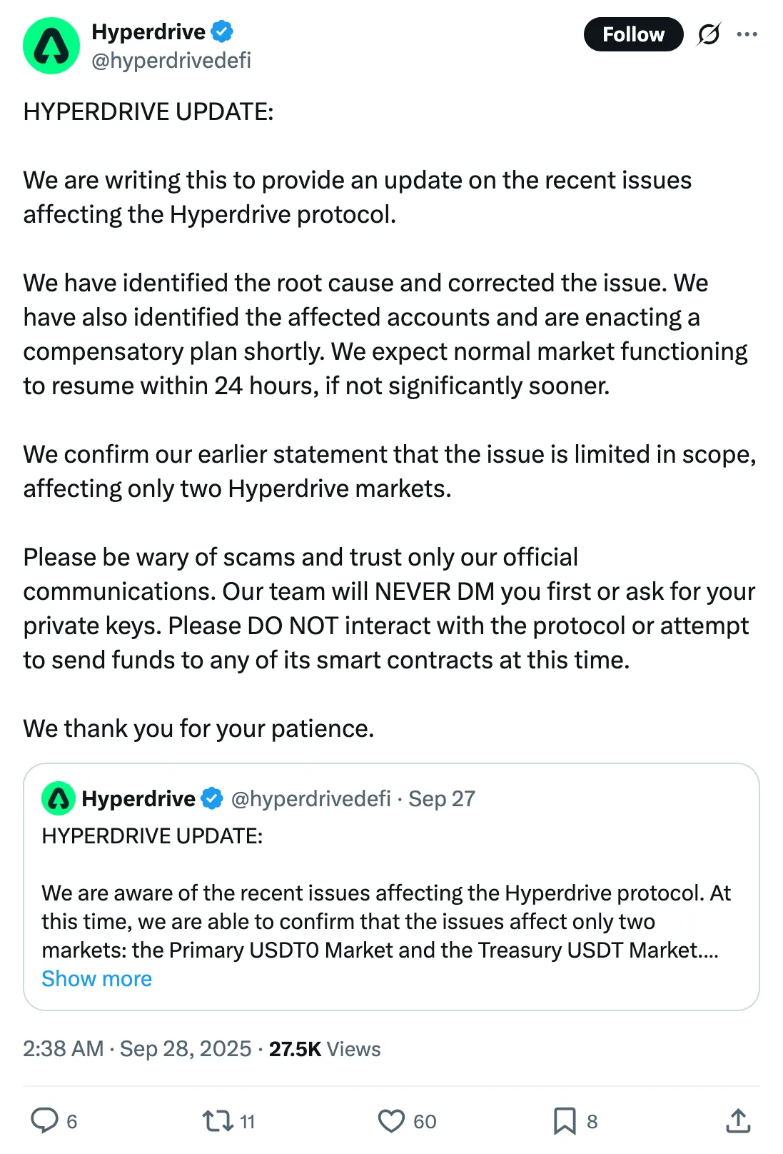 Tweet by Hyperdrive