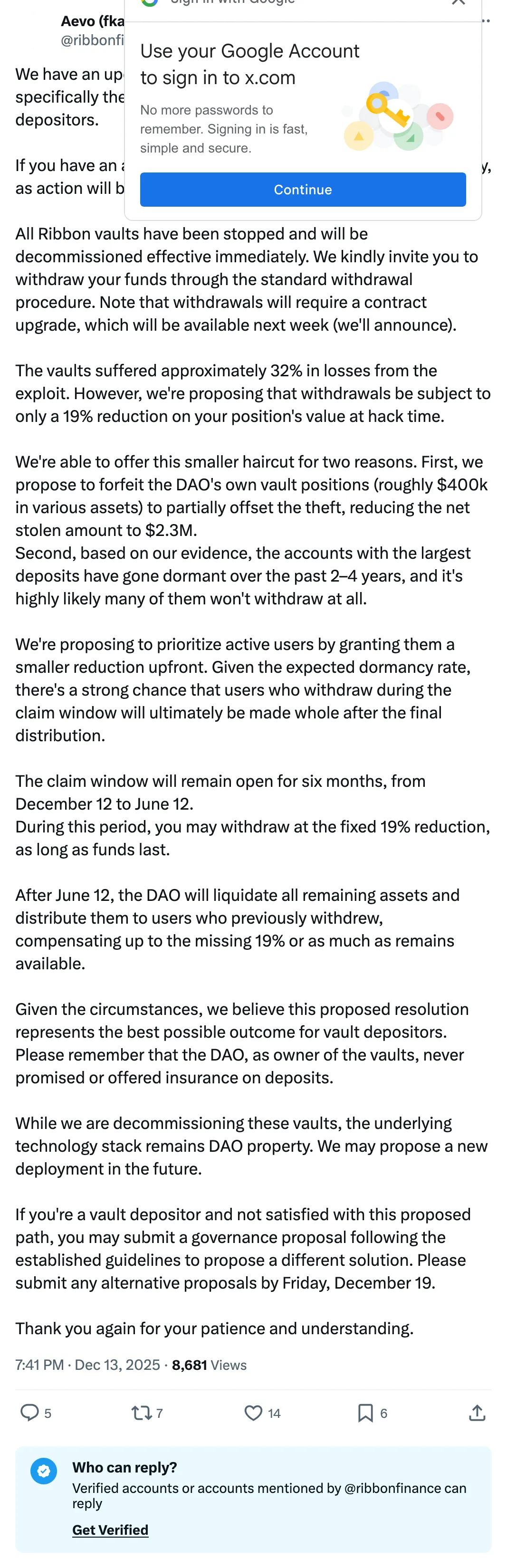 Tweet by Aevo (fka Ribbon Finance)